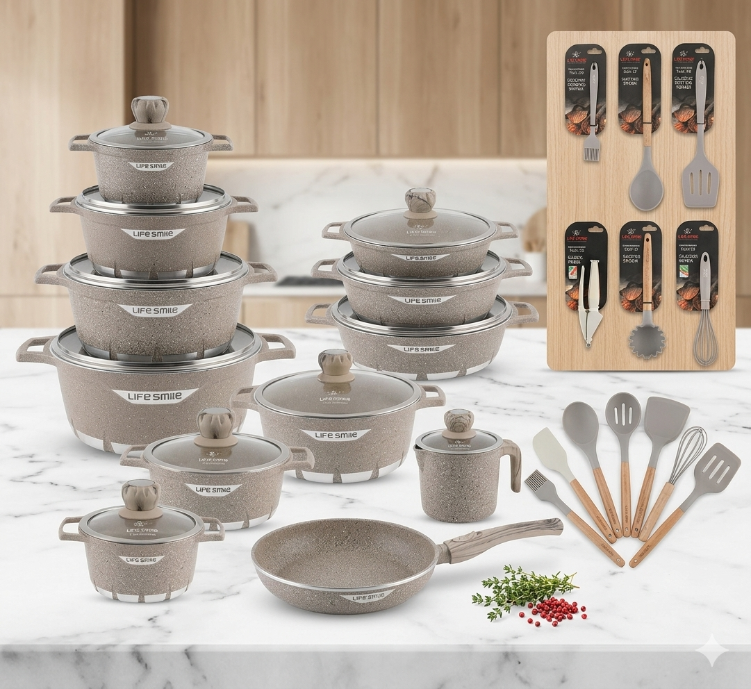 Conjunto de Panelas LIFE SMILE 29 Pecas Granito Antiaderente